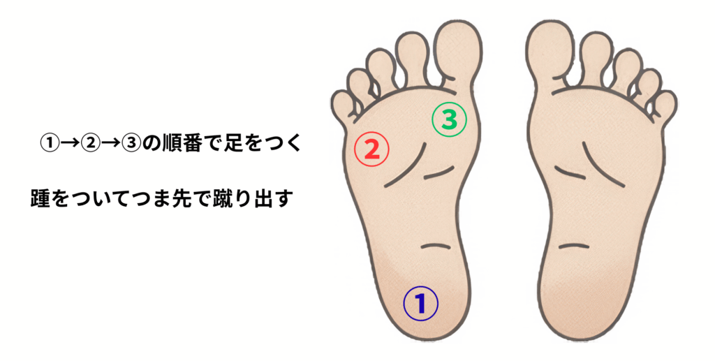 ① かかとで着地