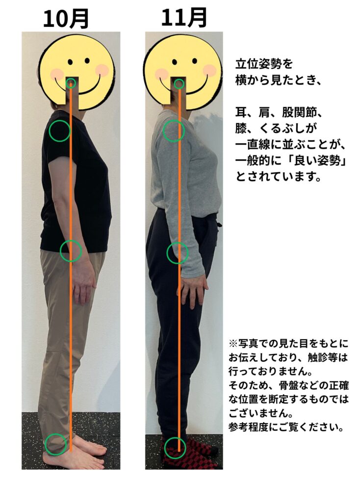 肩やくるぶしが耳からのラインに近づき、重心の位置も整ってきているのが分かります。