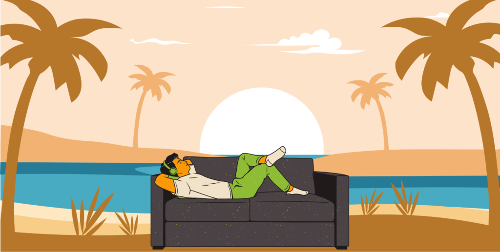 - 背もたれに寄りかかってバンザイ